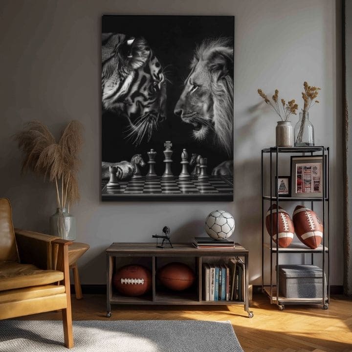 Slika na platnu Lav i tigar - Šahovska strategija | 80x100 cm