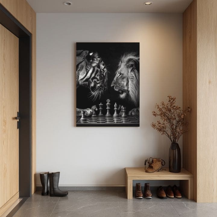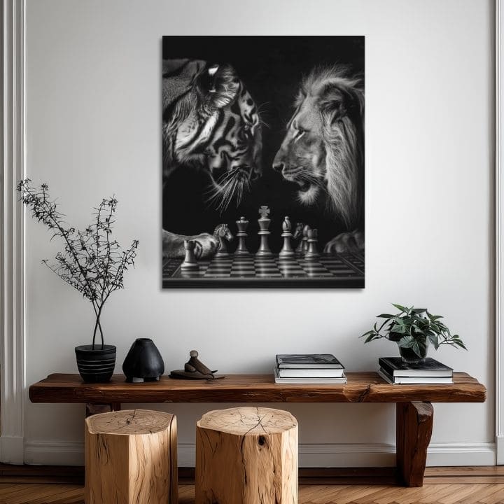 Introduction » Novine » Slika na platnu Lav i tigar - Šahovska strategija | 80x100 cm