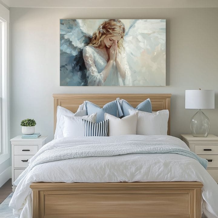 Ugao za molitvu ili meditaciju: Anđeoska slika u ovom prostoru može poslužiti kao inspiracija za trenutke tišine i razmišljanja.